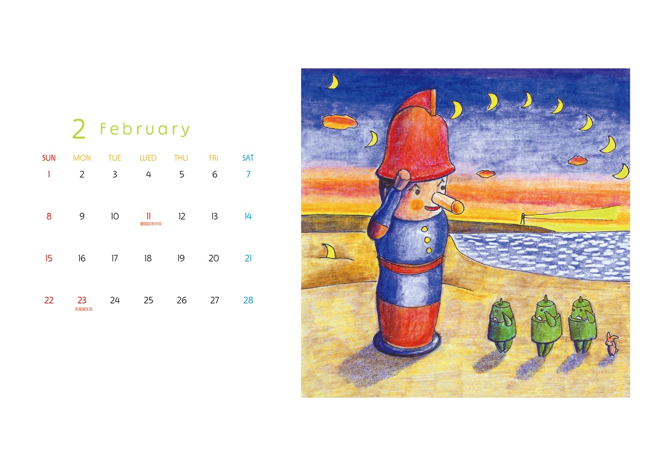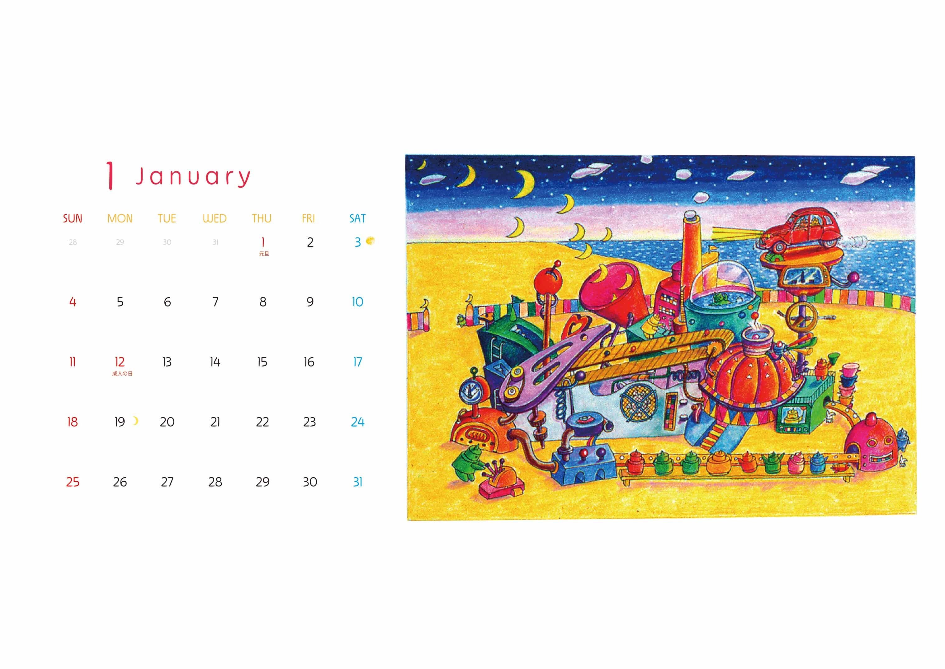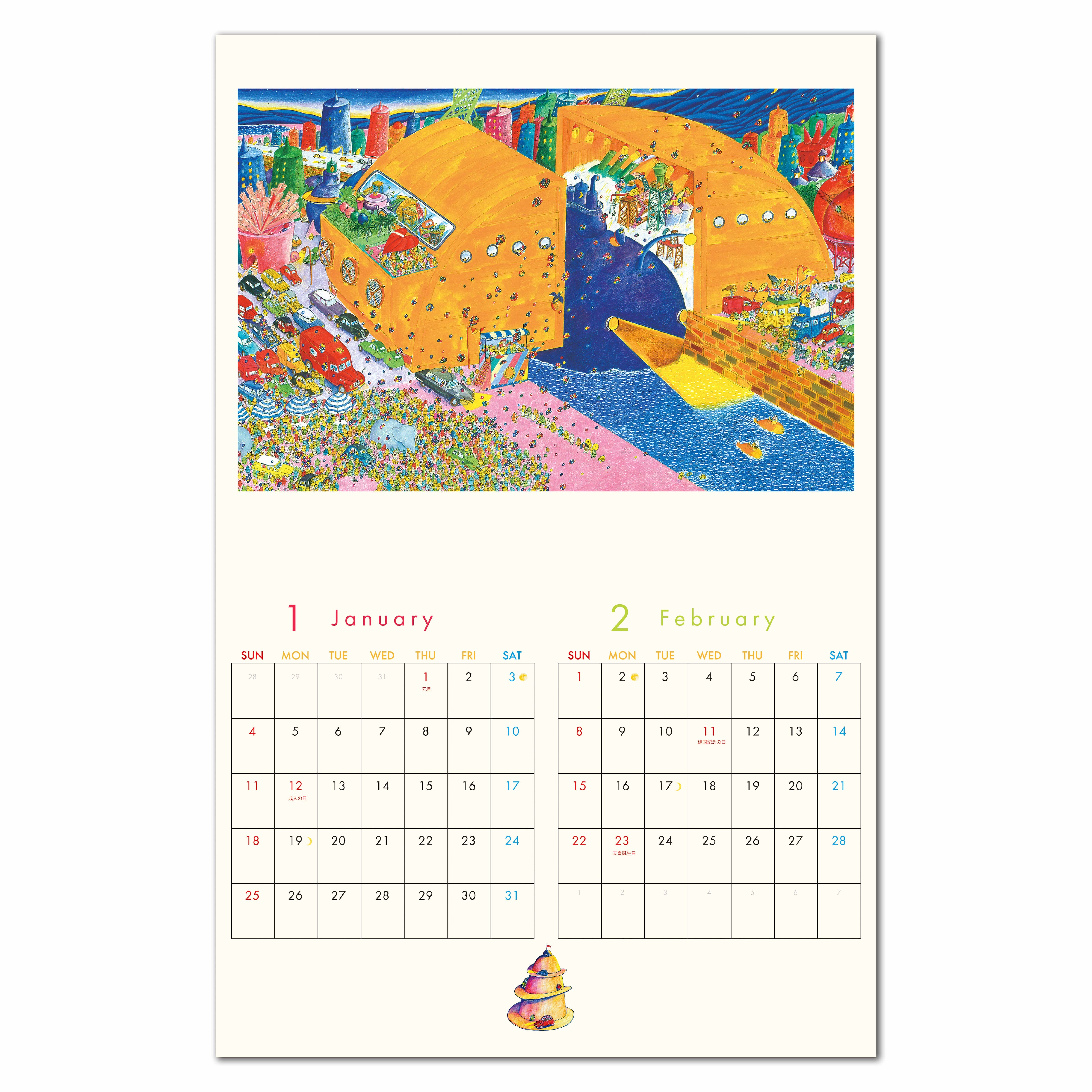 壁掛けカレンダーと卓上カレンダーは、表紙デザインのみ同じですが、中に収録された作品は異なります。