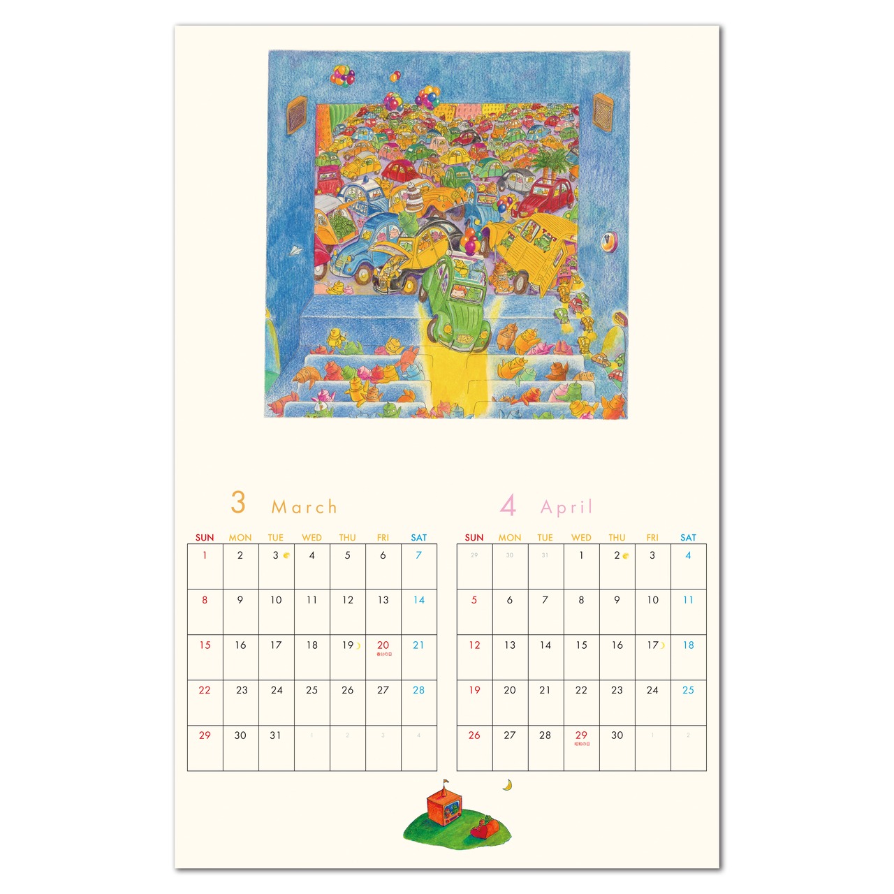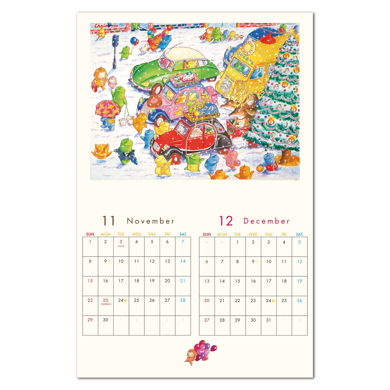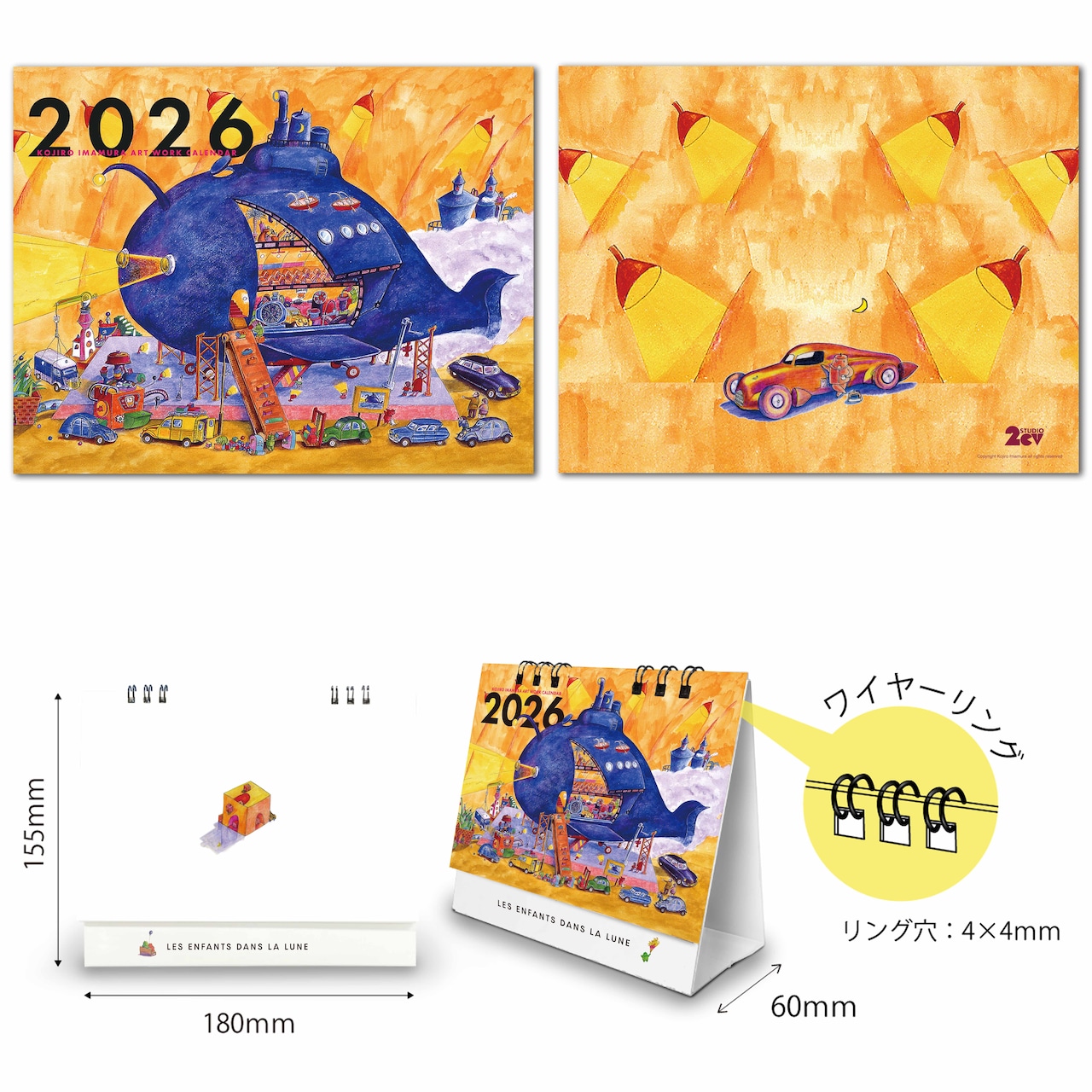 壁掛けカレンダーと卓上カレンダーは、表紙デザインのみ同じですが、中に収録された作品は異なります。